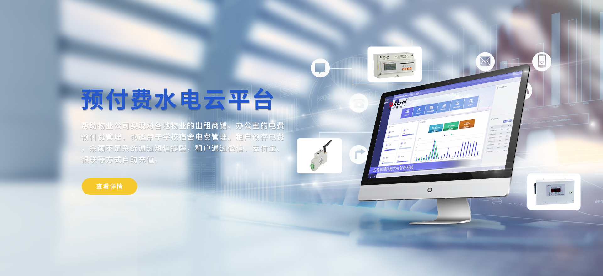 安科瑞提供的解決方案包括Acrel-EIoT能源物聯網云平臺、變電所運維云平臺安全用電管理云平臺、環保用電監管云平臺智慧消防云平臺能源管理云平臺、工業企業能源管控平臺、遠程預付費云平臺餐飲油煙監管云平臺、電動汽車/電瓶車充電樁收費管理云平臺、電力監控/無線測溫系統、電能質量治理系統、電氣火災監控系統、消防設備電源監控系統防火門監控系統、應急照明和疏散指示系統、智能照明控制系統、醫用隔離電源絕緣監測系統等,幫助用戶實現能源智能化、可視化、精細化管理,提高用能效率和用能安全,為企業節能降耗和實現能源數字化建設提供數據服務。